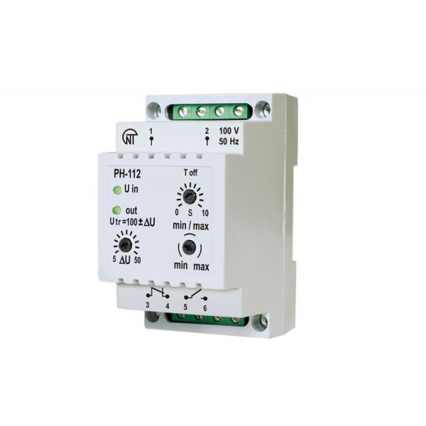 Универсальное электронное реле максимального/минимального напряжения РН-112 предназначено для контроля допустимой величины и наличия напряжения с номинальными параметрами 100 В, 50 Гц и коммутации электрических процессов в устройствах защиты и автоматики электроустановок выше 1000 В.