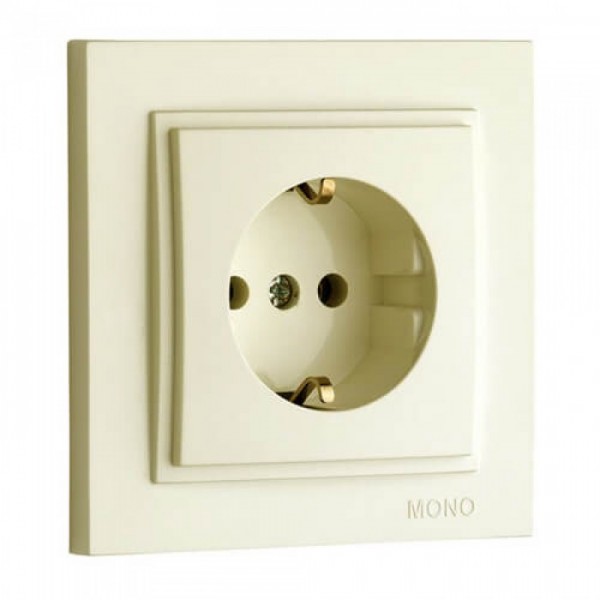 Розетка 1-я с заземлением, Mono Electric, DESPINA (крем) (102-170021-117)