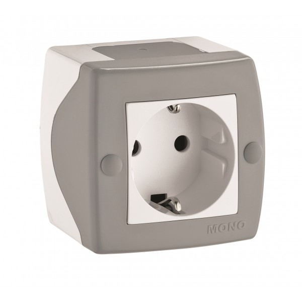 Розетка с заземлением, Mono Electric, OCTANS IP 20 (серый) (104-020007-117)
